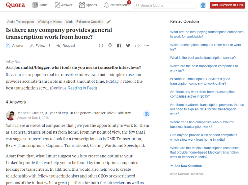See an example of a Quora question and answer below. Also, check out the related questions. This is a gold mine to get ideas for creating content.