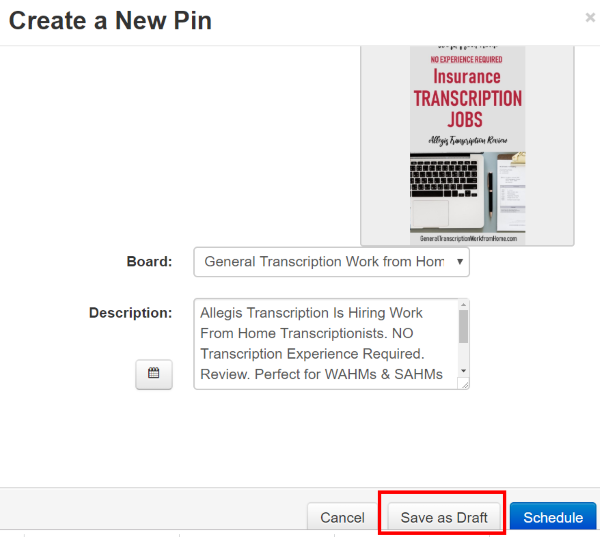 where you'll have the option to schedule the post or save as draft.